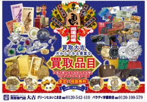 是非、ご不要だと思ったものがございましたら一度買取専門店大吉パラディ学園前店へお持ち下さい。